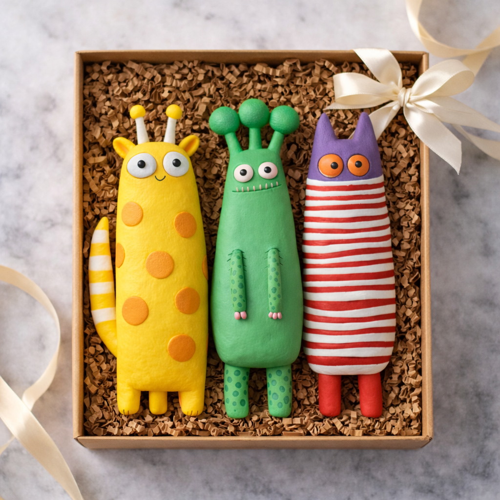 These whimsical clay cats feature playful shapes, bright colors, and funny personalities that instantly bring life to your desk, shelf, or workspace. Whether you're a cat lover or simply enjoy quirky handmade decor, this set makes a delightful addition to any room.